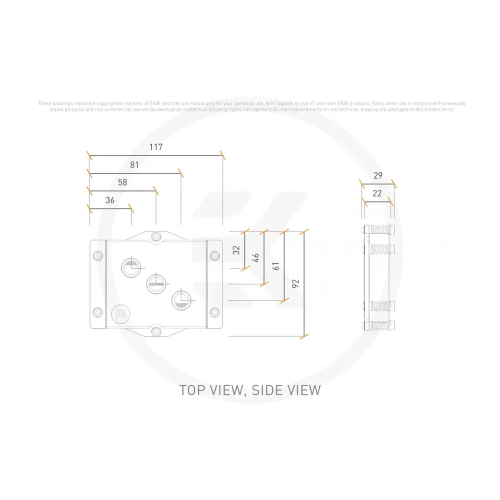 Водоблок EKWB EK-Pro CPU WB SP5 Ni+Acetal розроблений спеціально для процесорів AMD® сокету SP5 (кодове ім'я Genoa), що підтримують до 96 ядер і мають TDP до 360 Вт. Ця модель забезпечує високу теплопровідність та надійність завдяки основі з найчистішої міді з нікелевим покриттям та верхньою частиною із міцного POM Acetal. Встановлюється безпосередньо на отвори кріплення сокету SP5, що забезпечує простоту монтажу без необхідності демонтажу материнської плати з корпусу.