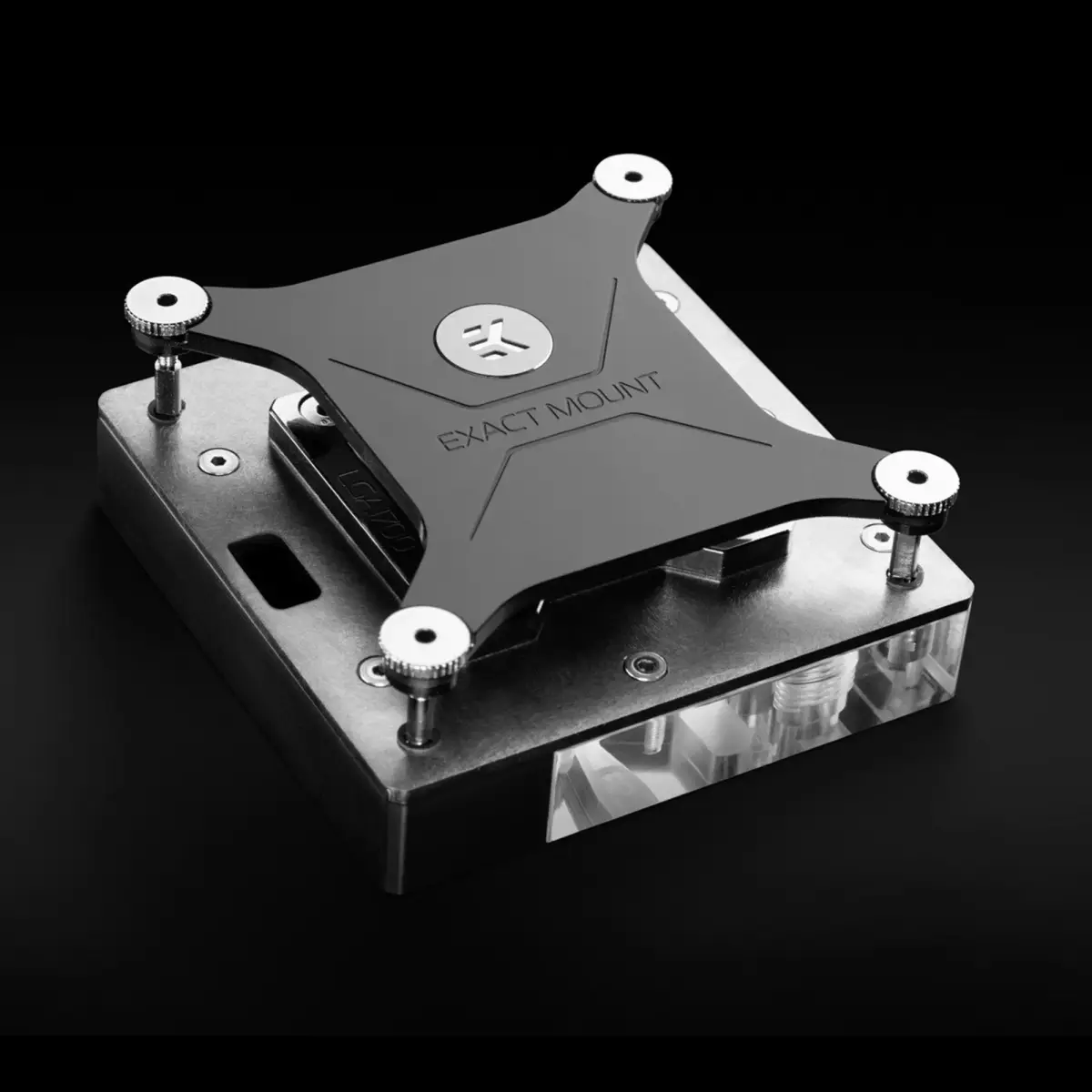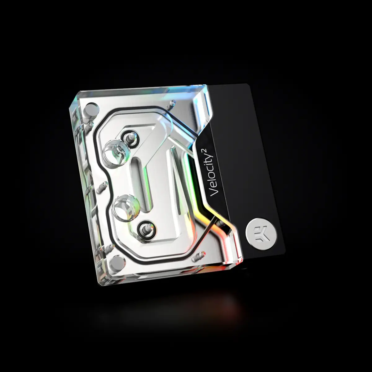 EKWB EK-Quantum Velocity² D-RGB використовує архітектуру OptiFlow і стандарт EK-Matrix7, який передбачає, що приріст висоти виробів або відстань між портами становить 7 мм. Фірмова монтажна система EK-Exact Mount включає лише три компоненти: власне водоблок, тильну пластину та кріплення. Основна ідея цього механізму кріплення полягає у простоті установки.