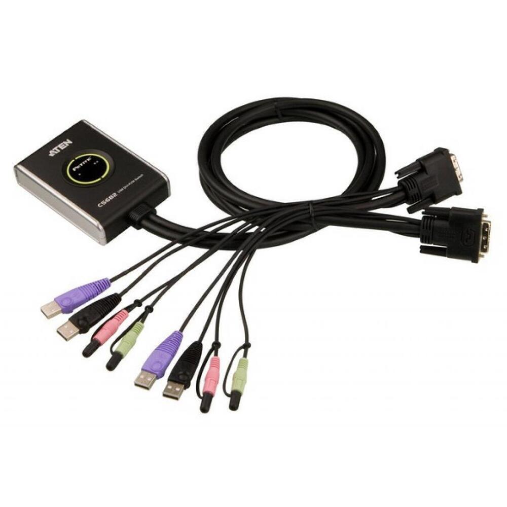 Комутатор KVM Aten CS-682 сумісний з багатьма платформами, включаючи Windows, зокрема Windows 7 , Mac, Sun і Linux. Підтримувана технологія Video DynaSync запобігає проблеми, які могли б виникнути під час завантаження комп'ютера, і встановлює налаштування монітора, забезпечуючи оптимальне дозвіл екрану і кращу якість зображення при перемиканні між портами. Поєднання підтримки DVI і звукових систем 2.1, можливості спільного використання периферійного пристрою USB 2.0 з розширенням зручних у використанні функцій, дозволяє користувачам не відставати від останніх нововведень в мультимедійних додатках