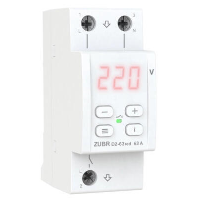 ZUBR D2 red має дуже зручне стандартизоване підключення вхід-вихід, відсутня необхідність використання нульової клеми при підключенні. Налаштування роботи пристрою здійснюється за допомогою лише трьох кнопок. Четверна кнопка «i» призначена для перегляду журналу аварійних спрацьовувань та розшифровки абревіатур пунктів меню. Цифровий екран постійно відображає значення напруги та виводить системну інформацію. У режимі очікування можна налаштувати яскравість екрана та індикатора.