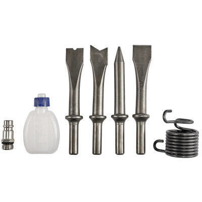 Пневматичний відбійний молоток Einhell TC-PC 45 – це потужний та надійний помічник для ремонтних та демонтажних робіт у будинку та саду, незалежно від того, який матеріал використовується – камінь чи метал. Для безпечної роботи передбачена нековзна прогумована рукоятка, розроблена для зручності користувача. При максимальному робочому тиску 6,3 бар інструмент із частотою ударів до 4500^хв-1 забезпечує силу удару до 1,2 Дж. Шестигранна головка забезпечує безпечне ведення долота. Міцний відбійний молоток із стисненим повітрям забезпечує максимальну продуктивність при внутрішньому діаметрі шланга 9 міліметрів. Завдяки універсальності практично немає обмежень на те, що може робити користувач. У комплект поставки входить набір із чотирьох 120-міліметрових зубил для різних застосувань, а також пляшка з маслом, вставний ніпель та натяжна пружина. Поставляється в практичному кейсі для транспортування та зберігання.